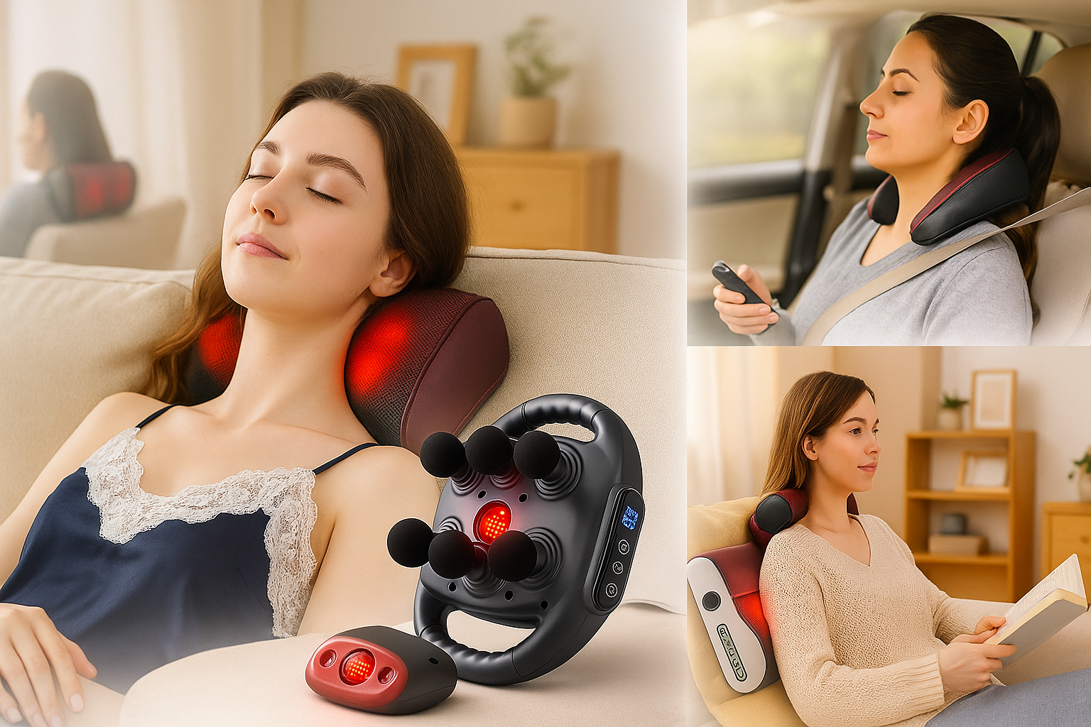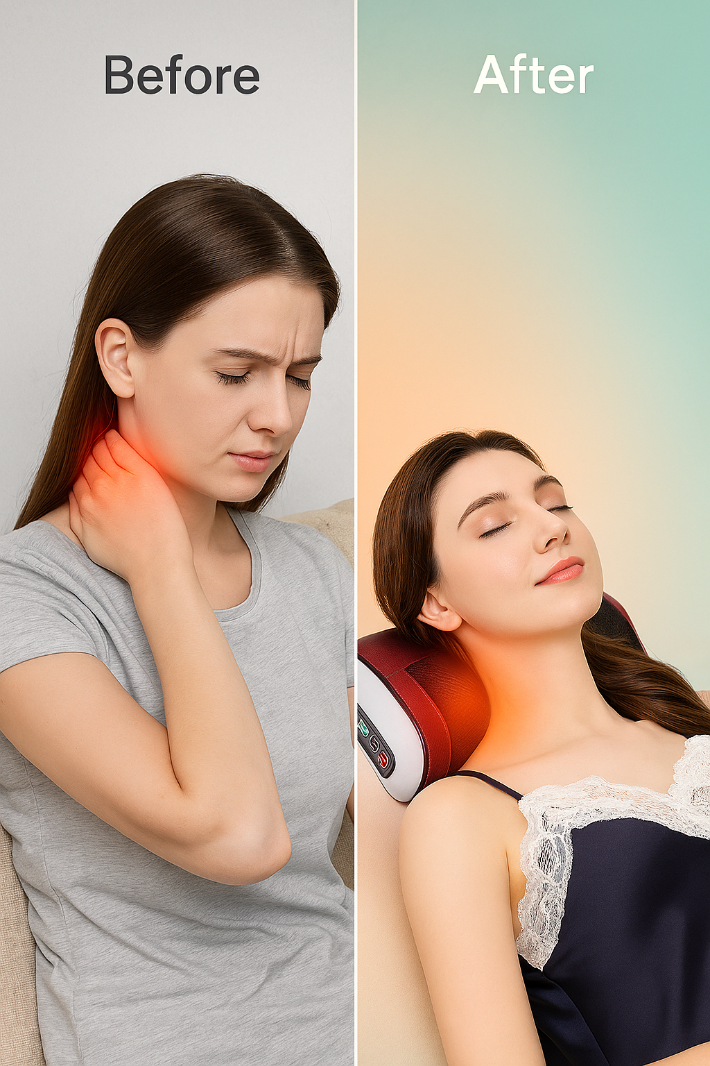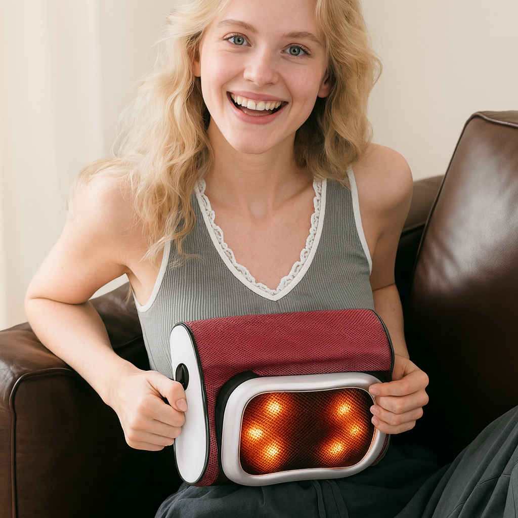 Soothe muscle tension and melt away daily fatigue with the RelaxMotion Heat Massager. Its gentle warmth and deep-kneading nodes deliver instant comfort to your neck, back, or abdomen — helping you relax, recharge, and feel your best wherever you are.